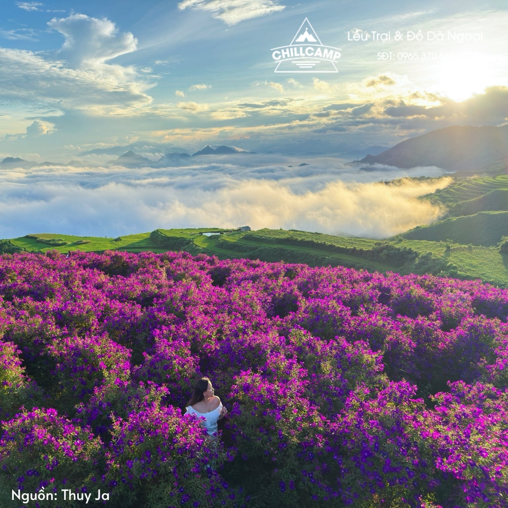 Chọn chỗ bằng phẳng gần đỉnh đồi, dựng lều từ chiều để sáng sớm mở mắt ra là thấy biển mây bồng bềnh ngay trước cửa lều — cảm giác “chạm mây” thật sự khó quên!