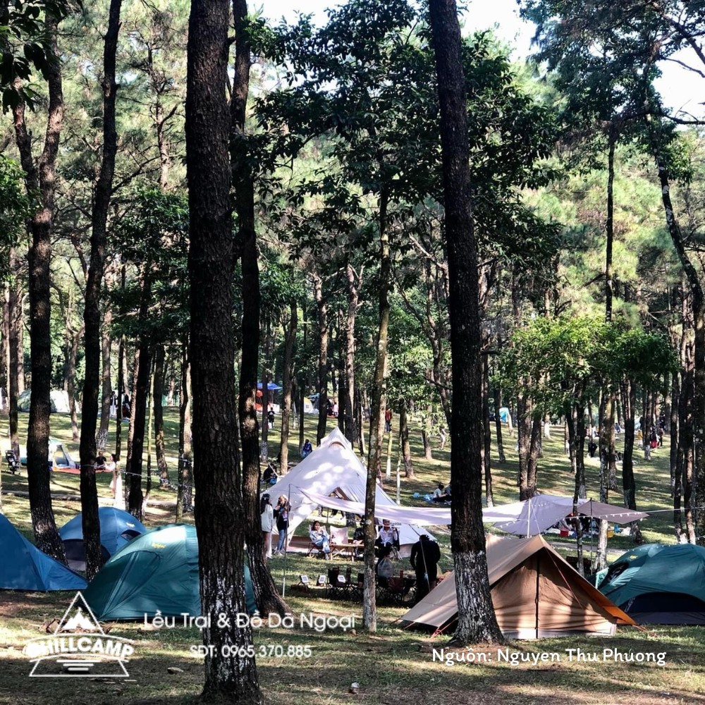 Đồi thông là khu vực được nhiều du khách lựa chọn để cắm trại. Với địa hình thoai thoải, rộng rãi và yên tĩnh, nơi đây tạo điều kiện thuận lợi cho việc dựng lều và tổ chức các hoạt động nhóm. Khung cảnh rừng thông xanh mướt, lãng mạn khiến khu vực này trở thành điểm check-in nổi tiếng cho các tín đồ sống ảo.