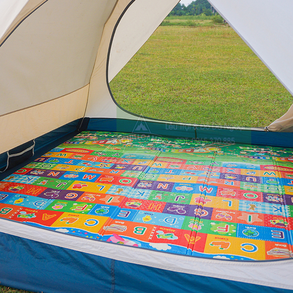 Thảm lót lều là lớp ngăn cách giữa bạn và nền đất ướt sũng, vì vậy hãy chuẩn bị cho mình ít nhất một tấm nhé. Ngoài việc chống lại sự ẩm ướt của nền đất, thảm lót cũng cách nhiệt với sàn lều và mang đến cho bạn giấc ngủ ấm áp hơn. Bên cạnh đó, trải một tấm thảm dưới nền đất sẽ giúp cho mọi người không phải đi lại trên nền đất ẩm ướt, lầy lội. Trong trường hợp trời không mưa, bạn cũng có thể dùng thảm để trải lên đất để đặt thức ăn, đồ đạc… rất sạch sẽ và tinh tế.
